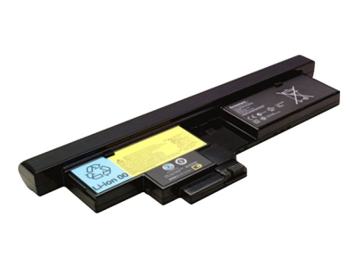 En raison de sa conception compatible, la batterie peut rester dans le système lorsque celui-ci est connecté au ThinkPad X200 UltraBase. (Pour la durée de vie de la batterie, voir lenovo.com/alldaycomputing)