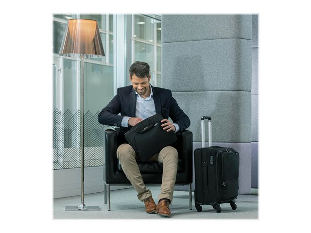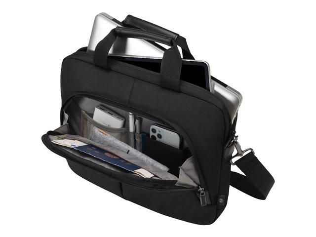 L'Eco Slim Case PRO vous accompagne en toute fiabilité, peu importe où vous allez. Le sac ultrafin répond aux plus hautes exigences en termes de qualité et de fonctionnalité. La séparation rembourrée du compartiment ordinateur s'adapte parfaitement à votre appareil et maintient les ordinateurs de 12-14.1". Grâce au rembourrage perforé et léger en mousse EVA, votre ordinateur est protégé de manière optimale. La poignée en cuir de haute qualité offre un transport confortable au quotidien. En plus du compartiment pour ordinateur portable, l'Eco Slim Case PRO dispose d'un compartiment rembourré pour les tablettes jusqu'à 10.5". De plus, le sac offre un large compartiment coté dorsal pour les documents. Dans la poche frontale, vous pouvez ranger vos accessoires personnels et autres accessoires. La bande de fixation pour trolley offre un confort parfait lors de voyages avec un bagage supplémentaire. Cela fait de l'Eco Slim Case PRO le sac parfait pour tous ceux qui se déplacent souvent et qui souhaitent soutenir la réutilisation raisonnable des bouteilles en PET grâce à une solution de transport écologique.
