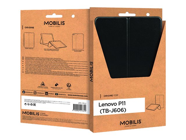 Mobilis Origine - Étui à rabat pour tablette - cuir artificiel - noir - pour Lenovo Tab P11 ZA7R, ZA7S, ZA7X, ZA7Y, ZA82, ZA83