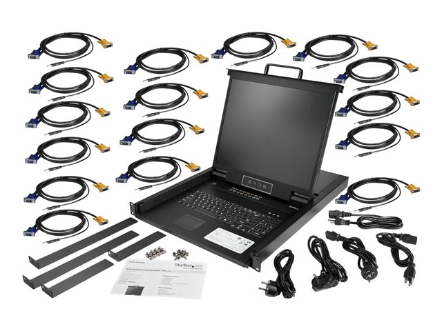 StarTech.com 16 Port Rackmount KVM Console with 6ft Cables, Integrated KVM Switch with 19" LCD Monitor, Fully Featured 1U LCD KVM Drawer- OSD KVM, Durable 50,000 MTBF, USB + VGA Support - 19in. LCD KVM Console (RKCONS1916K) - Console KVM avec commutateur KVM - 16 ports - PS/2, USB - US - 19" - rack-montable - 1280 x 1024 - 250 cd/m² - 1000:1 - VGA - noir - 1U