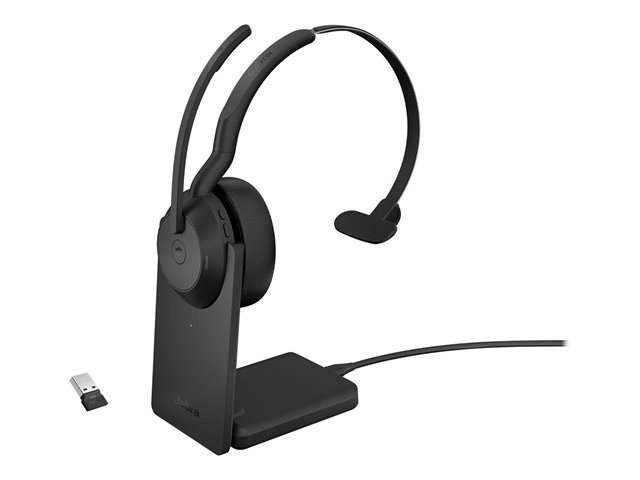 Jabra Evolve2 55 MS Mono - Micro-casque - sur-oreille - Bluetooth - sans fil - Suppresseur de bruit actif - USB-C via un adaptateur Bluetooth - noir - avec support de chargement - certifié Zoom, Cisco Webex Certified, Certifié Tencent Meeting, Certifié Alcatel-Lucent, Certifié Avaya, Certifié Unify, Certifié MFi, Certifié Google Meet, Certifié Amazon Chime 25599-899-989