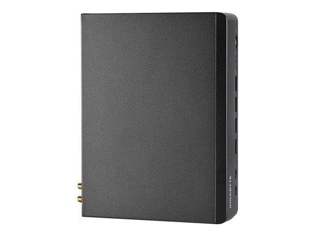 Les modèles BRIX PRO arborent un design moderne avec des pièces en métal et en plastique. Sa taille compacte lui permet de s'intégrer parfaitement dans n'importe quel environnement. Le GB-BSRE-1605 peut être placé horizontalement ou verticalement selon l'utilisation. De plus, il est doté d'un support VESA qui permet de le fixer à l'arrière de l'écran. Le modèle GB-BSRE-1605 BRIX PRO peut servir les applications les plus exigeantes grâce à sa grande puissance de traitement et à la prise en charge de plusieurs écrans.