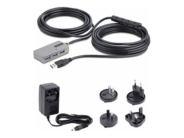 StarTech.com USB Extender Hub, 10m USB 3.0 Extension Cable with 4-Port USB Hub, Active/Bus Powered USB Repeater Cable, Optional 20W Power Supply Included - USB-A Hub w/ ESD Protection (U01043-USB-EXTENDER) - Concentrateur (hub) - 4 x USB 3.2 Gen 1 - de bureau