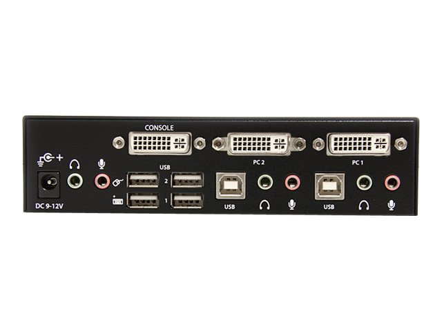 Le commutateur KVM DVI USB 2 ports SV231DVIUA vous permet de contrôler deux ordinateurs compatibles USB et DVI à partir d'un ensemble unique avec écran et périphériques (clavier, souris et haut-parleurs), et deux périphériques USB supplémentaires branchés aux ports USB intégrés au hub.