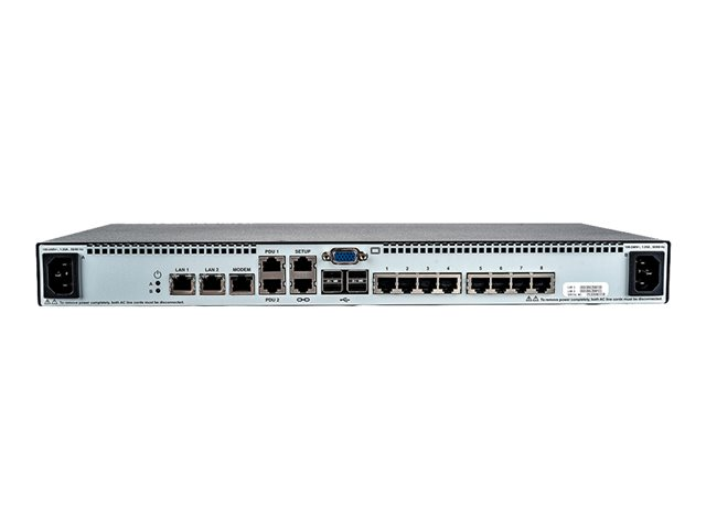 | Interfaces | 8 x KVM RJ-45 1 x VGA HD-15 2 x 1000Base-T RJ-45 5 x USB 2.0 Type A 4 x série (RS-232) RJ-45 |