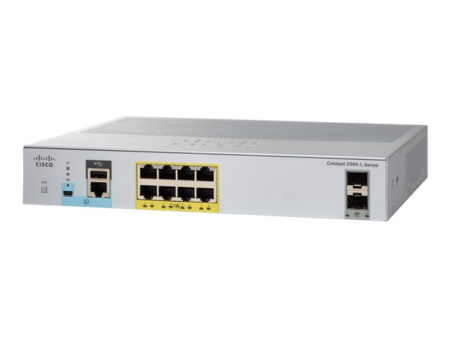 Cisco Catalyst 2960L-8PS-LL - Commutateur - Géré - 8 x 10/100/1000 + 2 x Gigabit SFP (liaison montante) - de bureau, Montable sur rack - PoE+ (67 W)